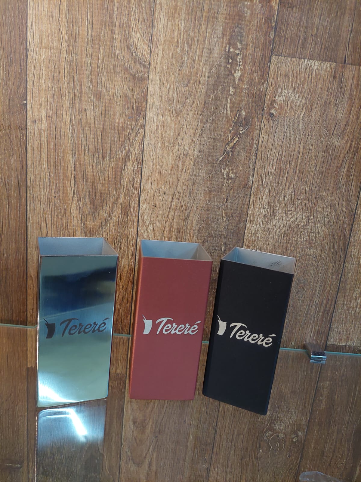 copo de terere material inox modelo quadrado cores preto, rose e prata